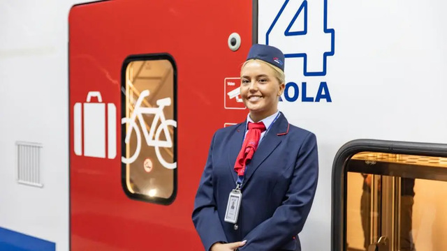 10月3日,在塞尔维亚首都贝尔格莱德,乘务员迎候乘客搭乘中企承建的匈塞铁路列车。新华社发(王韡摄)