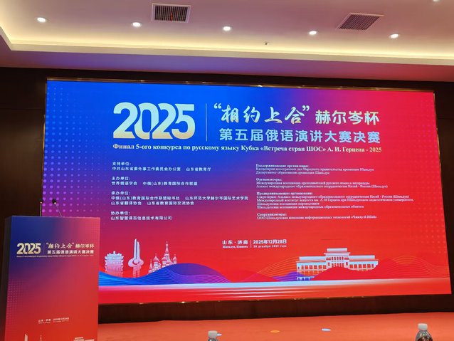 12月28日,2025“相约上合”赫尔岑杯第五届俄语演讲大赛决赛在山东师范大学举办。本次大赛由山东省委外事办、山东省教育厅等指导、世界俄语学会等单位共同举办,共有来自全国20个省(区、市)200余所高校和中学近2000名选手报名参赛,是国内具有较高影响力的俄语专业赛事之一。